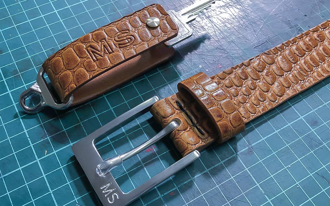 A belt with a hand-engraved monogram is the perfect gift for important clients